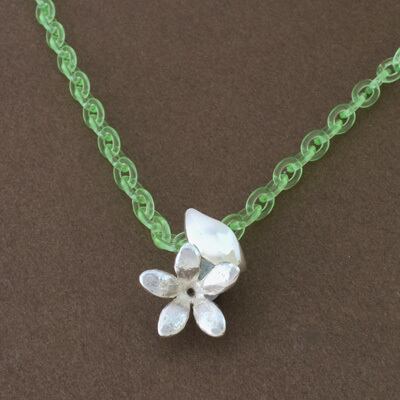 2000年にデビューした、立体感のある「ジャスミン」のペンダントトップ。鏡面のリーフと優しいテクスチャーの花弁のコントラストがフェミニン。シリーズには、ジャスミンの他、パンジー、カラー、デイジーがあります。