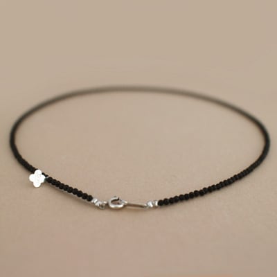 トップをつけたり、重ねつけしたり。マルチに使える人気の2mm珠のチョーカー。オニキスの表面がカットされているので、キラキラと華やかな印象。