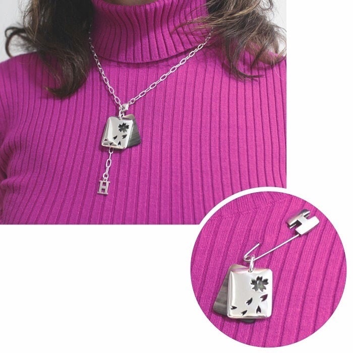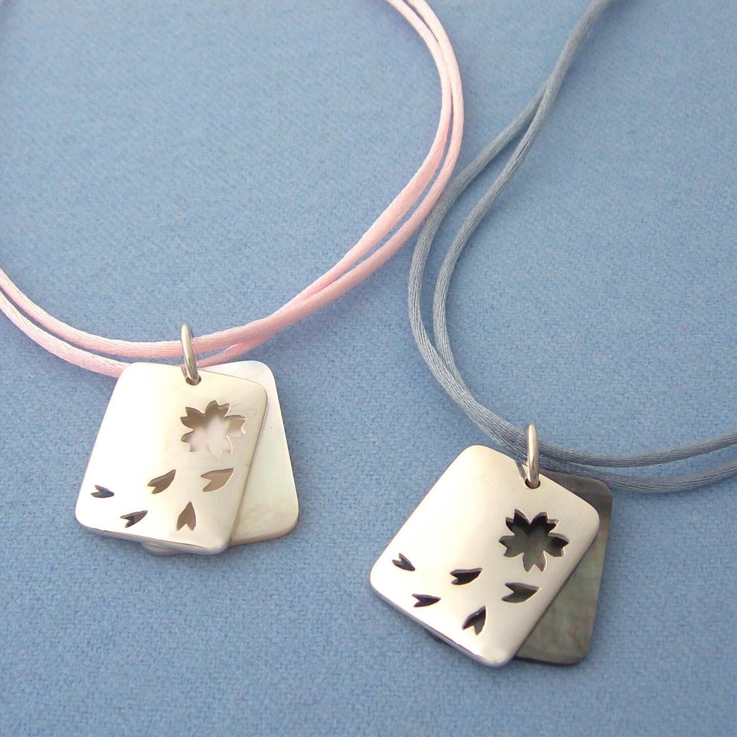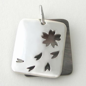 サクラと花びらのヌキ模様。 シルバーと黒蝶貝のコントラストが美しいトップです。